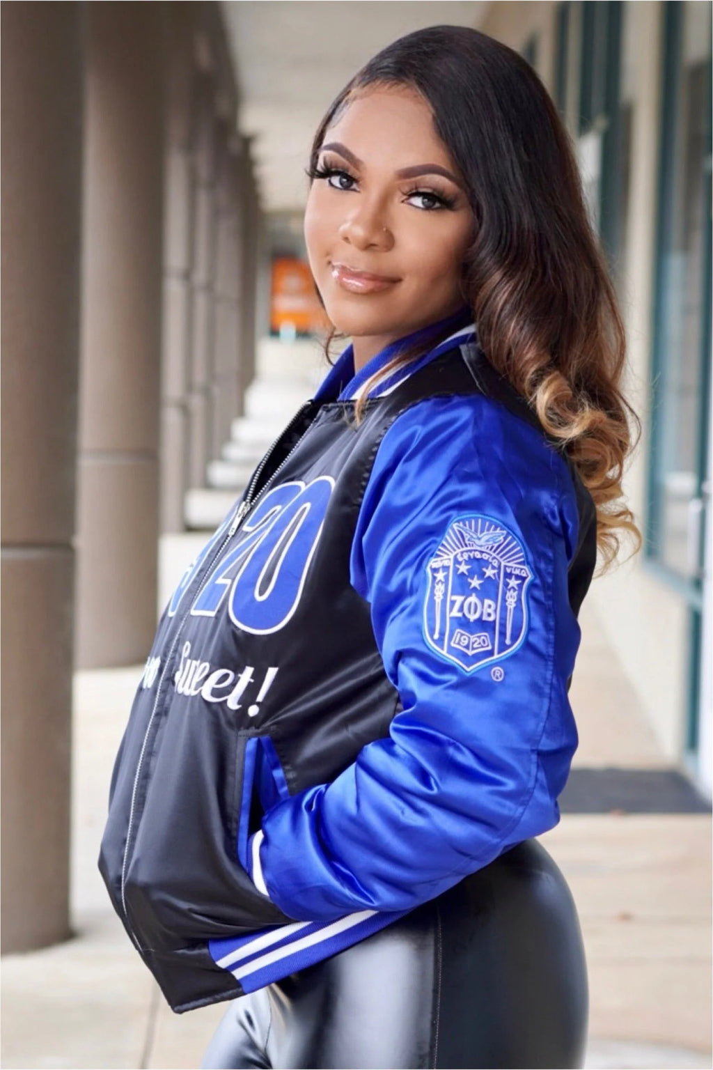1920 jacket, finer woman jacket, sorority bomber jacket, royal blue bomber, greek apparel jacket, womens sorority clothing, satin greek jacket, blue and black bomber, custom sorority jacket, zpb inspired jacket, 1920 sorority wear, finer woman apparel, greek life fashion