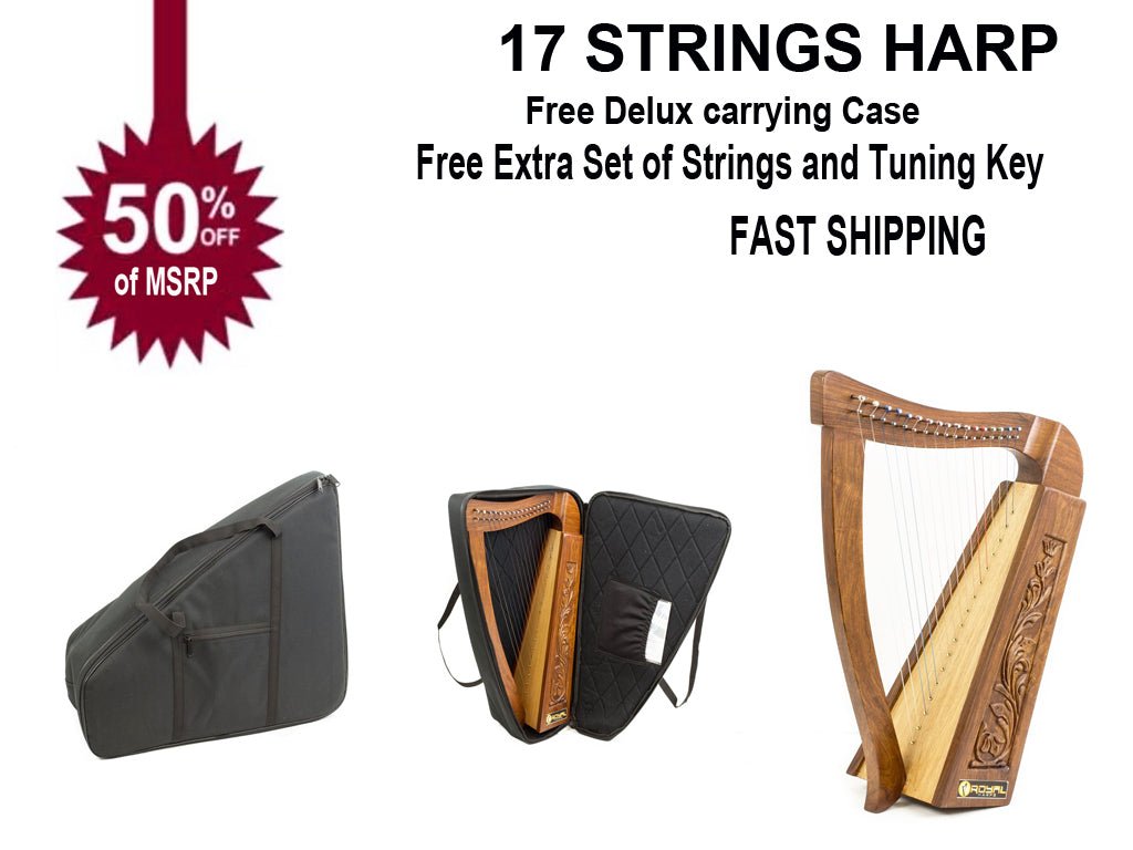 Celtic Irish Knee Harp 17 Strings Solid Wood Free Bag Strings Key