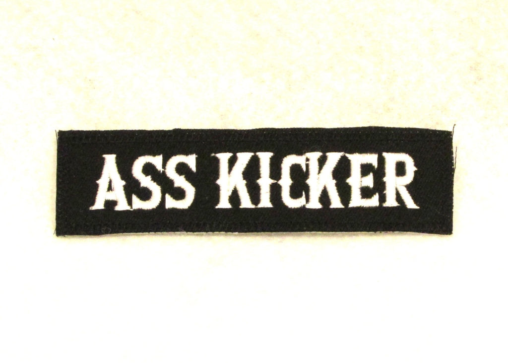 Ass Kicker White on Black Small Patch Iron on for Biker Vest SB748
