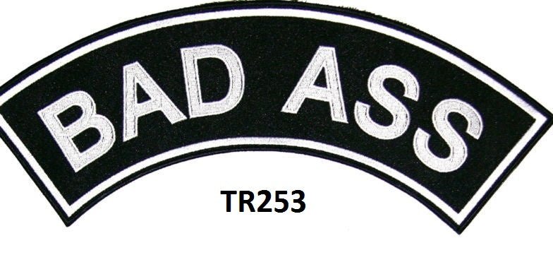 Bad Ass White on Black Iron on Top Rocker Patch for Biker Vest Jacket TR253.