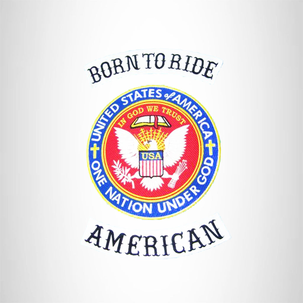 BORN TO RIDE AMERICAN One Nation Iron on 3 Large Back Patches Set for Biker Vest Jacket