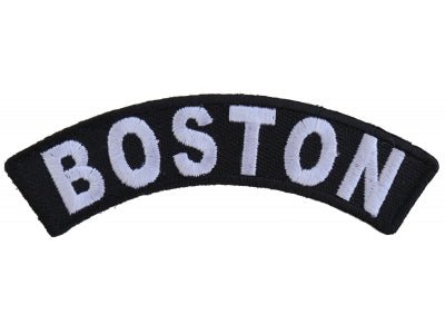 Boston State White on Black Small Rocker Patch Front for Biker Jacket Vest