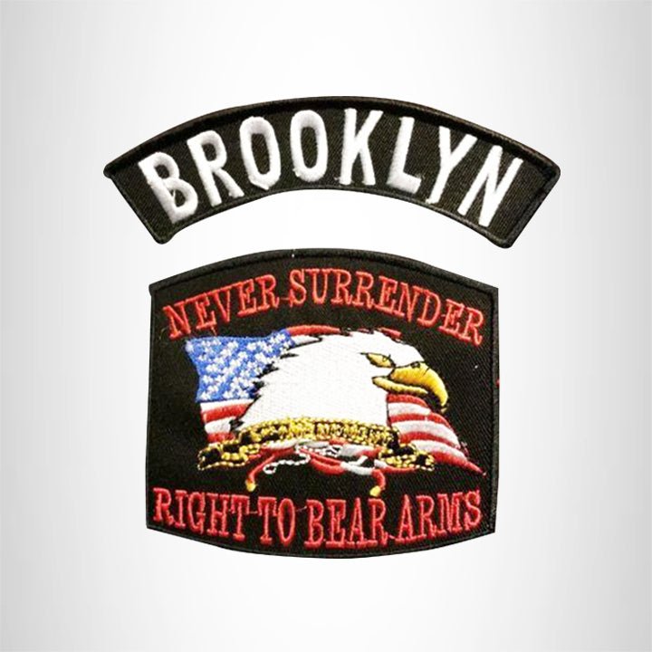 BROOKLYN and NEVER SURRENDER Small Patches Set for Biker Vest.