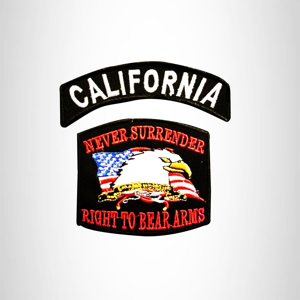 CALIFORNIA and NEVER SURRENDER Small Patches Set for Biker Vest