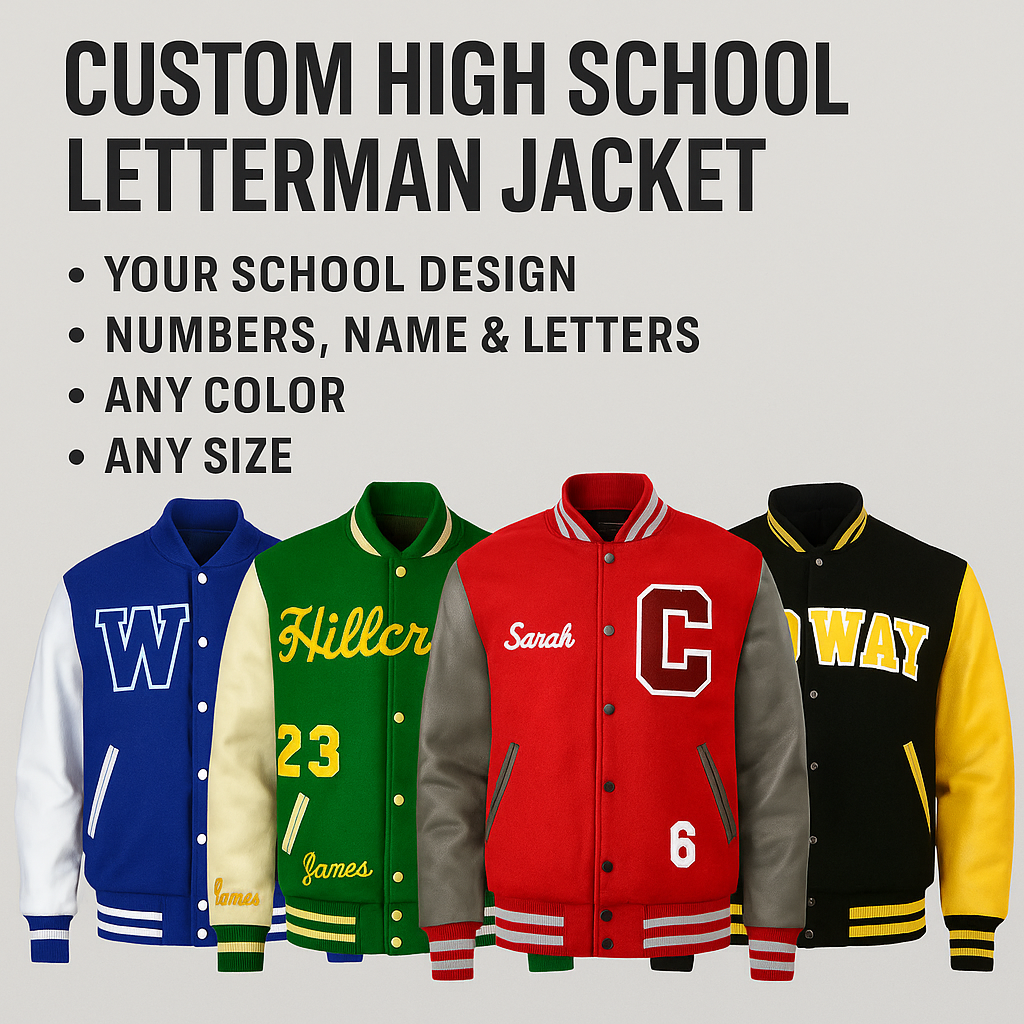 Designed for comfort and durability, each jacket is made to order and personalized with names, numbers, graduation years, mascots, or school lettering. Whether worn for game day, senior night, homecoming, or everyday wear, this letterman jacket represents achievement, tradition, and pride.