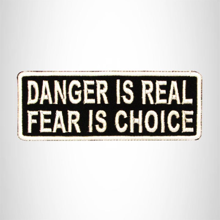 DANGER IS REAL White on Black Small Patch Iron on for Biker Vest SB721.