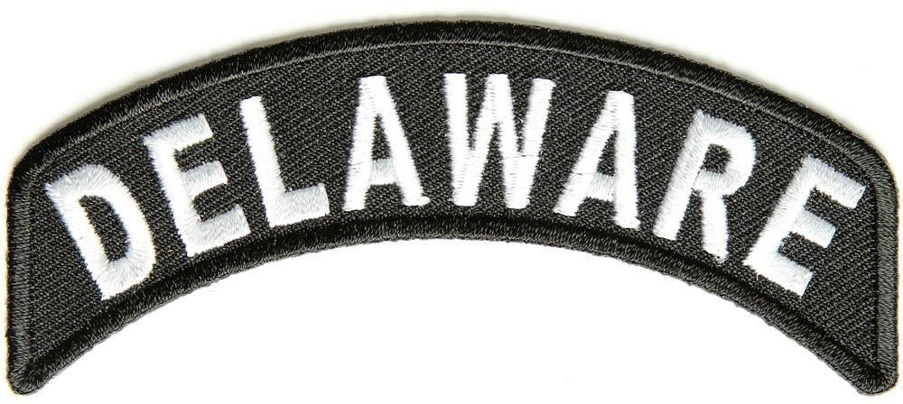 Delaware State White on Black Small Rocker Patch Front for Biker Jacket Vest.
