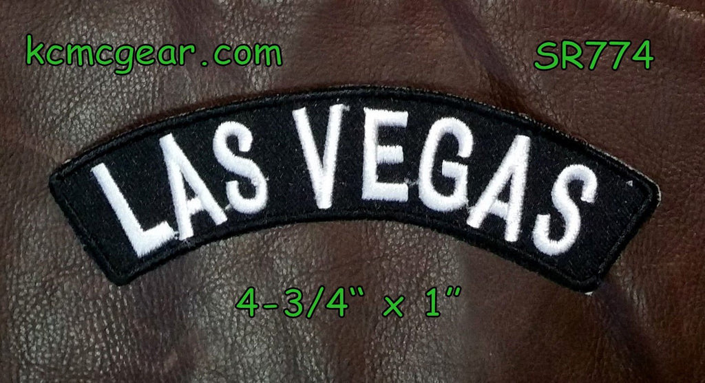 Las Vegas State White on Black Small Rocker Patch Front for Biker Jacket Vest.