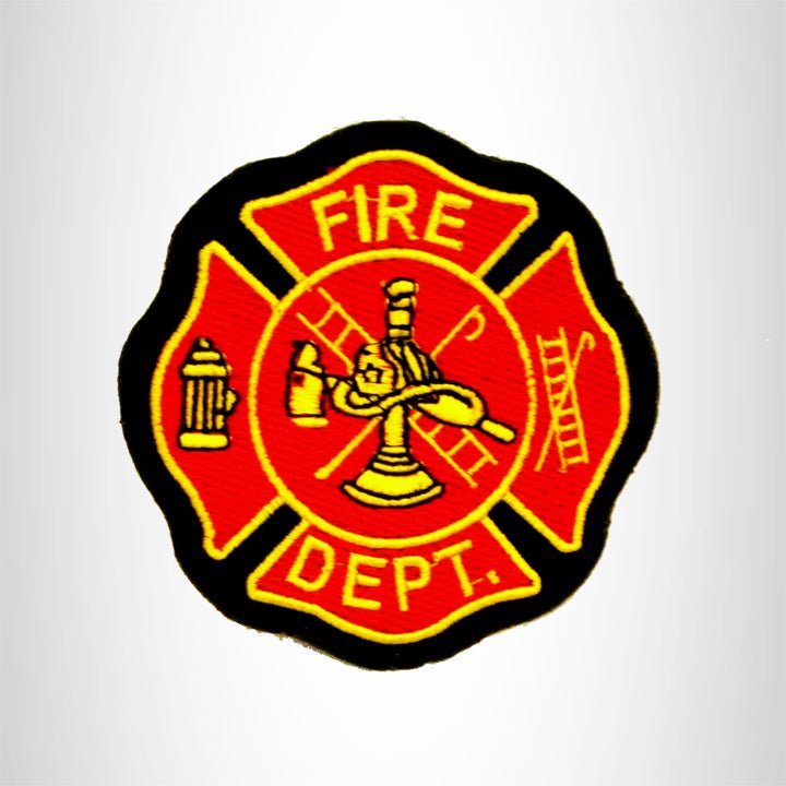 Fire Dept Yellow and Red on Black Small Patch Iron on for Biker Vest SB759