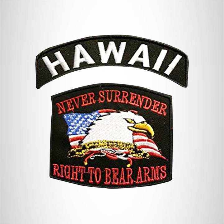 HAWAII and NEVER SURRENDER Small Patches Set for Biker Vest.