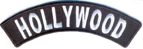Hollywood State White on Black Small Rocker Patch Front for Biker Jacket Vest.