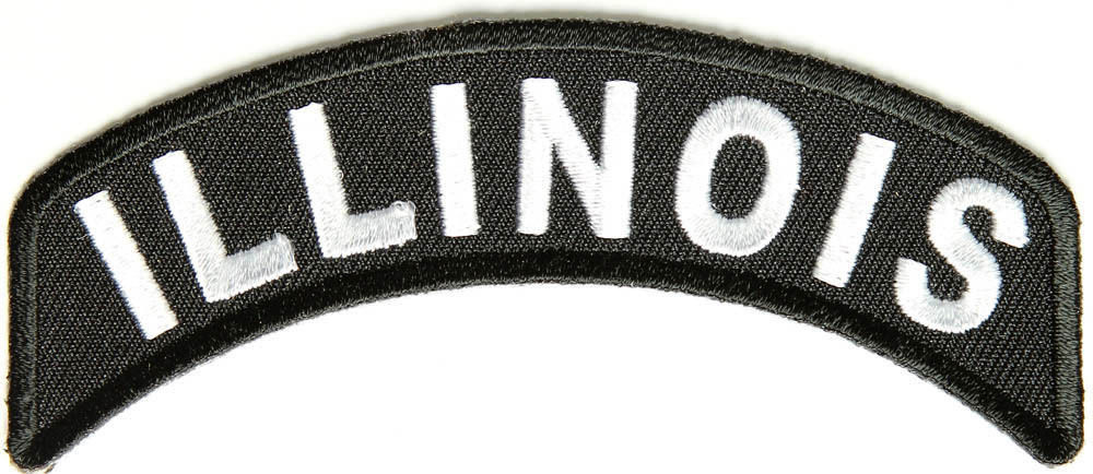 Illinois State White on Black Small Rocker Patch Front for Biker Jacket Vest.