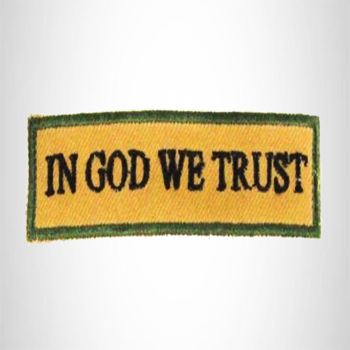 In God we Trust Black on Tan with Green Border Small Patch for Biker Vest SB775.