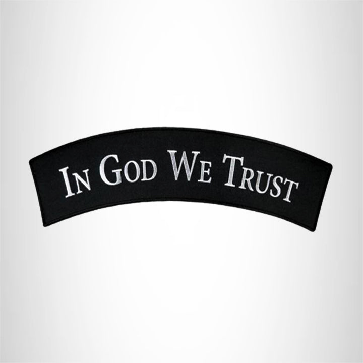 In God we Trust White on Black with Silver border Small Patch Iron on for Biker Vest SB767.