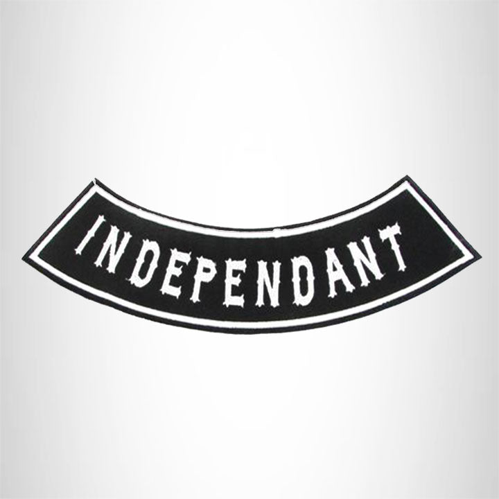 INDEPENDENT White on Black Bottom Rocker Iron on Patch for Biker Vest BR448
