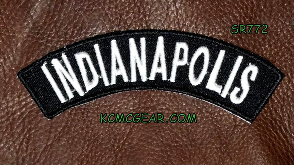Indianapolis State White on Black Small Rocker Patch Front for Biker Jacket Vest.