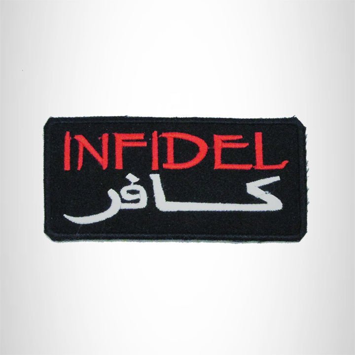 INFIDEL red and white on black Small Patch Iron on for Biker Vest SB724.