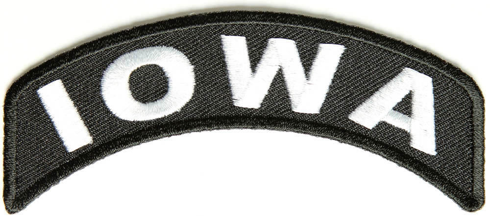 Iowa State White on Black Small Rocker Patch Front for Biker Jacket Vest.
