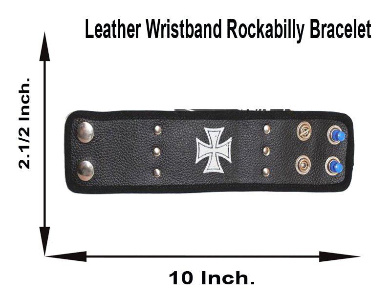 leather wrist band rockabilly braclet 10/ 2 1/2 inches