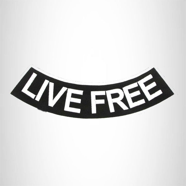 LIVE FREE White on Black Bottom Rocker Iron on Patch for Biker Vest BR444