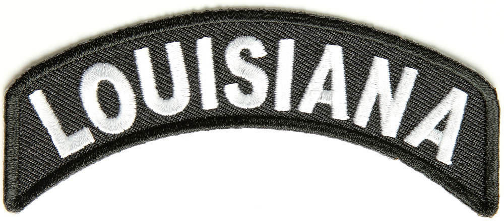 Louisiana State White on Black Small Rocker Patch Front for Biker Jacket Vest.