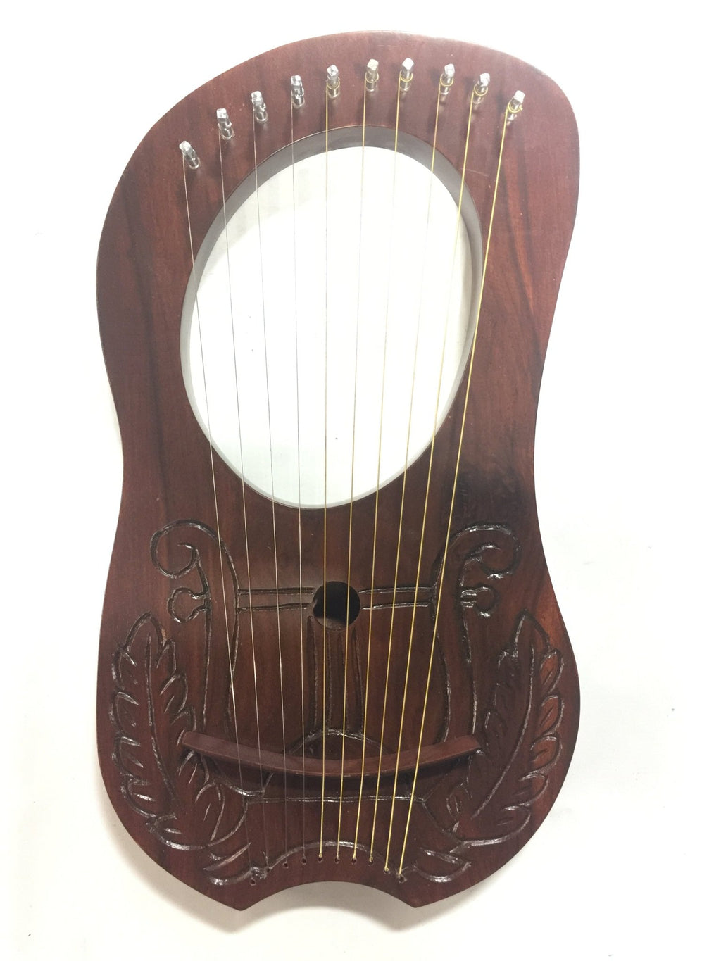 Lyre Harp 10 String Musical Instrument Solid Wood Handmade Carved with Tuning Wrench Extra String