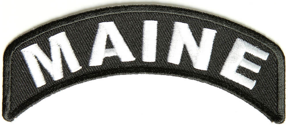 Maine State White on Black Small Rocker Patch Front for Biker Jacket Vest