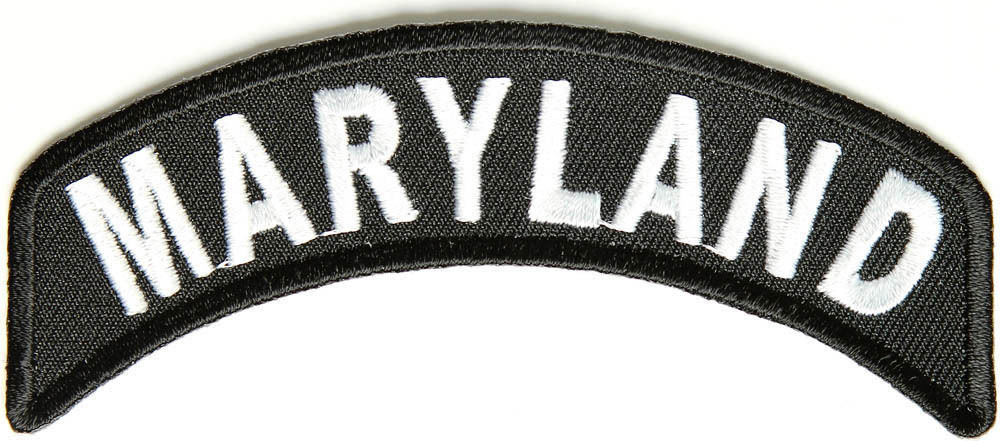 Maryland State White on Black Small Rocker Patch Front for Biker Jacket Vest