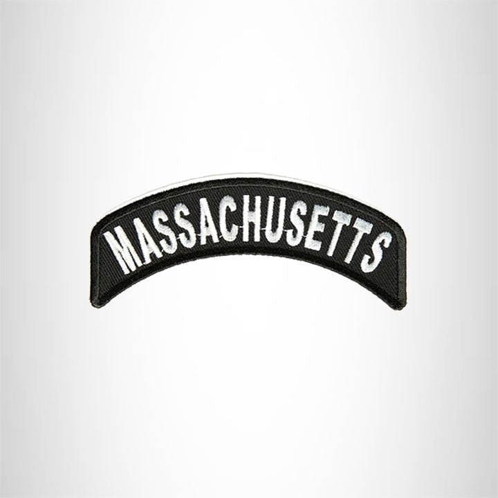 Massachusetts State White on Black Small Rocker Patch Front for Biker Jacket Vest.