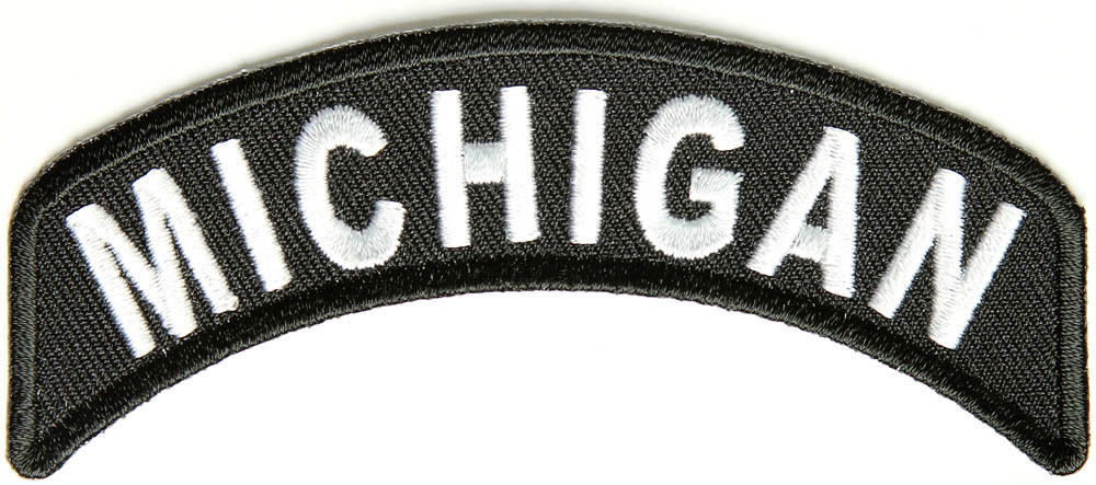 Michigan State White on Black Small Rocker Patch Front for Biker Jacket Vest