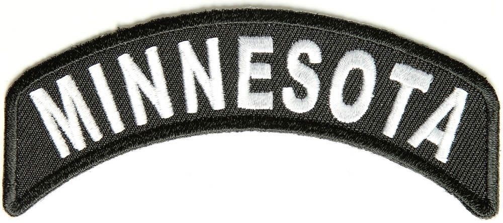 Minnesota State White on Black Small Rocker Patch Front for Biker Jacket Vest.