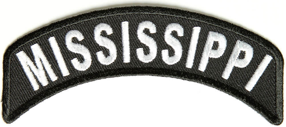 Mississippi State White on Black Small Rocker Patch Front for Biker Jacket Vest.