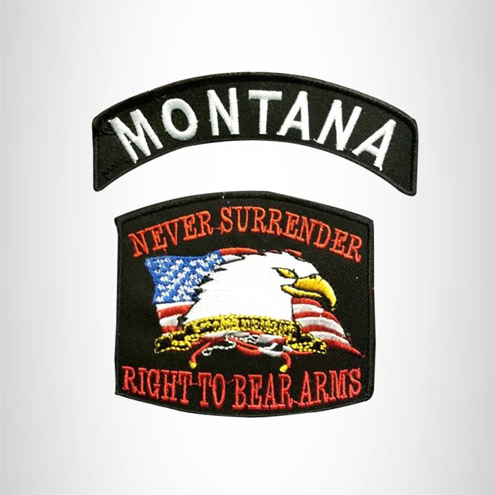 MONTANA and NEVER SURRENDER Small Patches Set for Biker Vest
