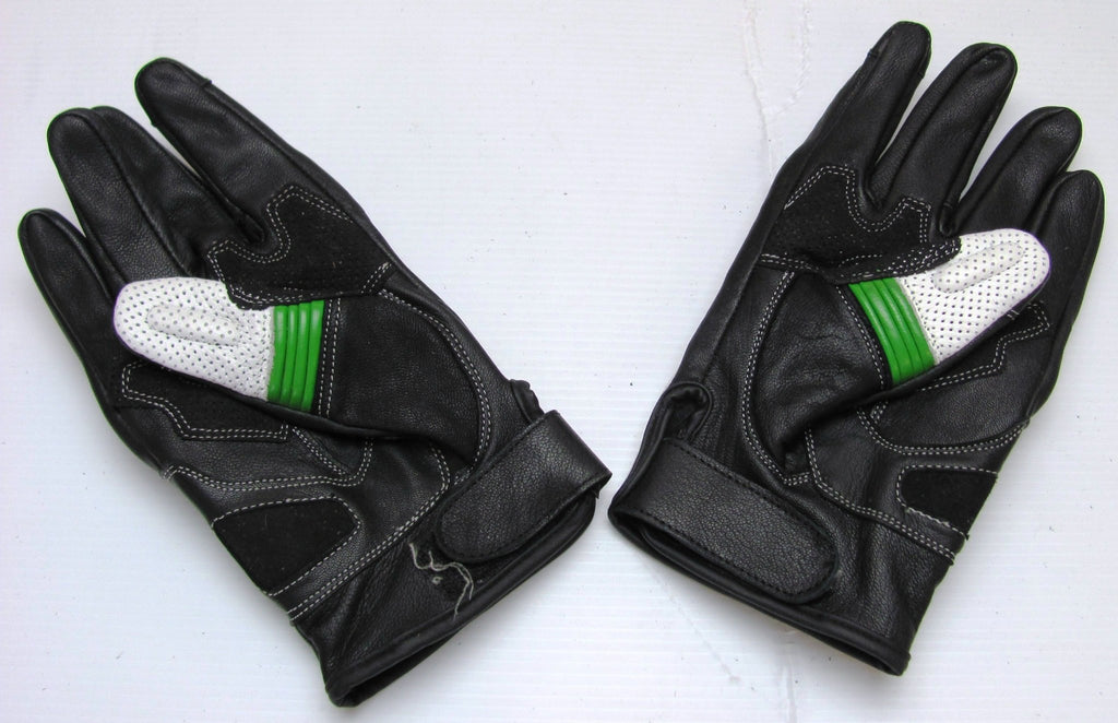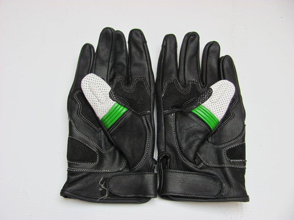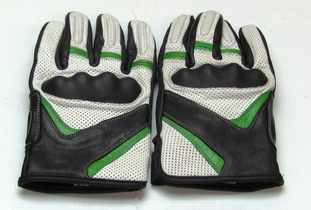 Motorcycle Gloves with Armour Guard on Knuckles White Black Green Size Medium/L