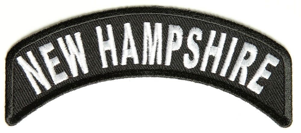 New Hampshire State White on Black Small Rocker Patch Front for Biker Jacket Vest.