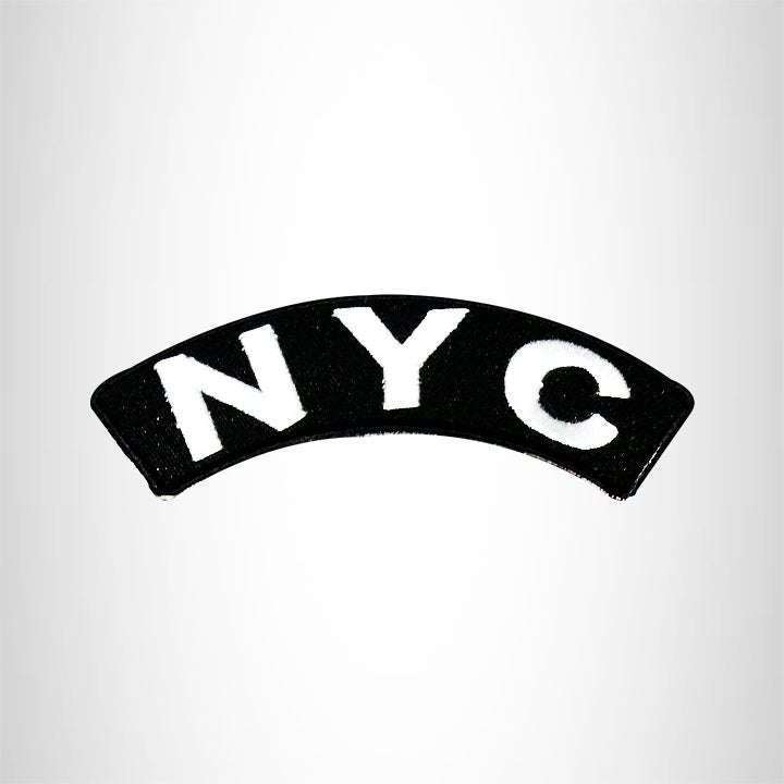 NYC State White on Black Small Rocker Patch Front for Biker Jacket Vest