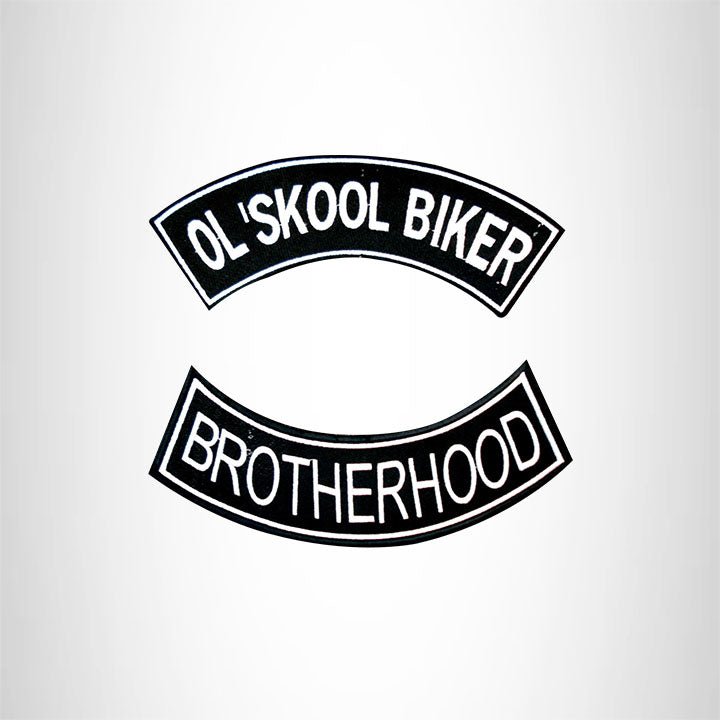 Ol' Skool Biker Brotherhood 2 Patches Set Sew on for Vest Jacket