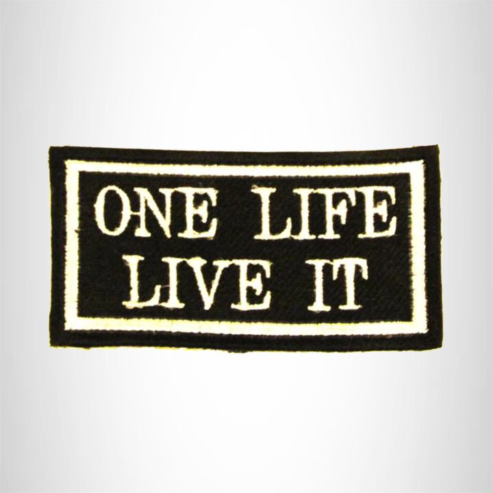 ONE LIFE LIVE IT White on black Iron on Small Patch for Biker Vest SB841.