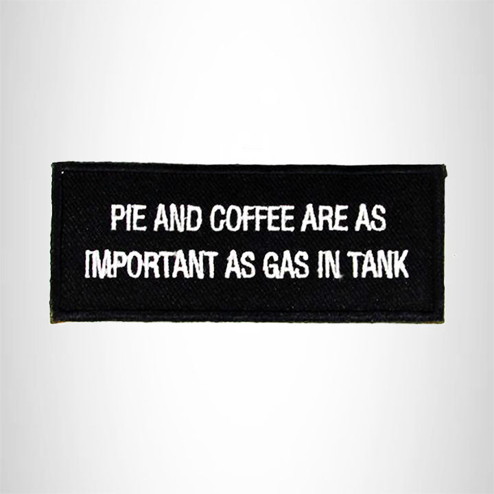 Pie and Coffee are as Important as Gas in Tank Iron on Small Patch Biker Vest