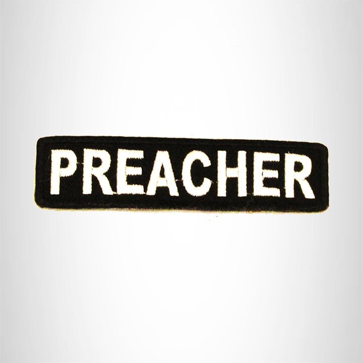 PREACHER White on Black Small Patch Iron on for Biker Vest SB708