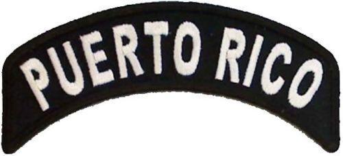 Puerto Rico State White on Black Small Rocker Patch Front for Biker Jacket Vest.