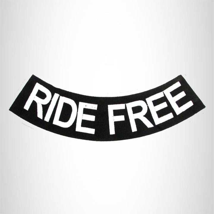 RIDE FREE White on Black Bottom Rocker Iron on Patch for Biker Vest BR450