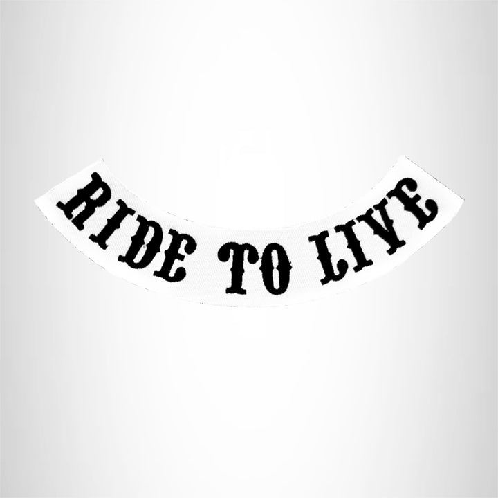 RIDE TO LIVE Black on White Bottom Rocker Patch for Vest Jacket