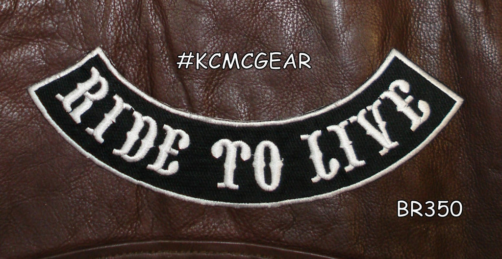 Ride to Live Lower Bottom Rocker Patch White on Black for Biker Vest.