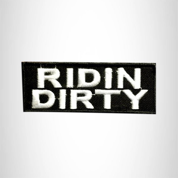 RIDIN DIRTY White on Black Small Patch Iron on for Vest Jacket SB597