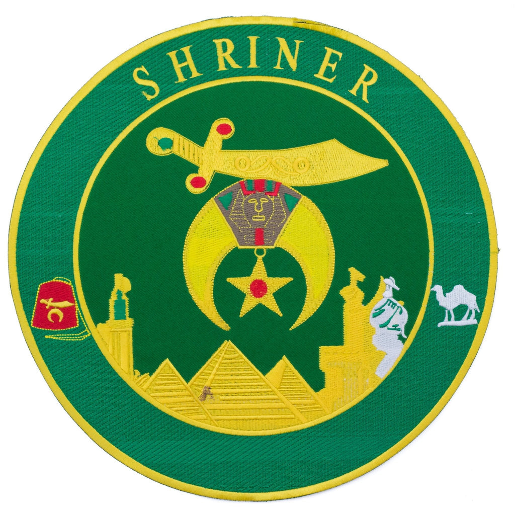 Shriner Green and Yellow in Round Center PatchIron on for Biker Vest CP194G