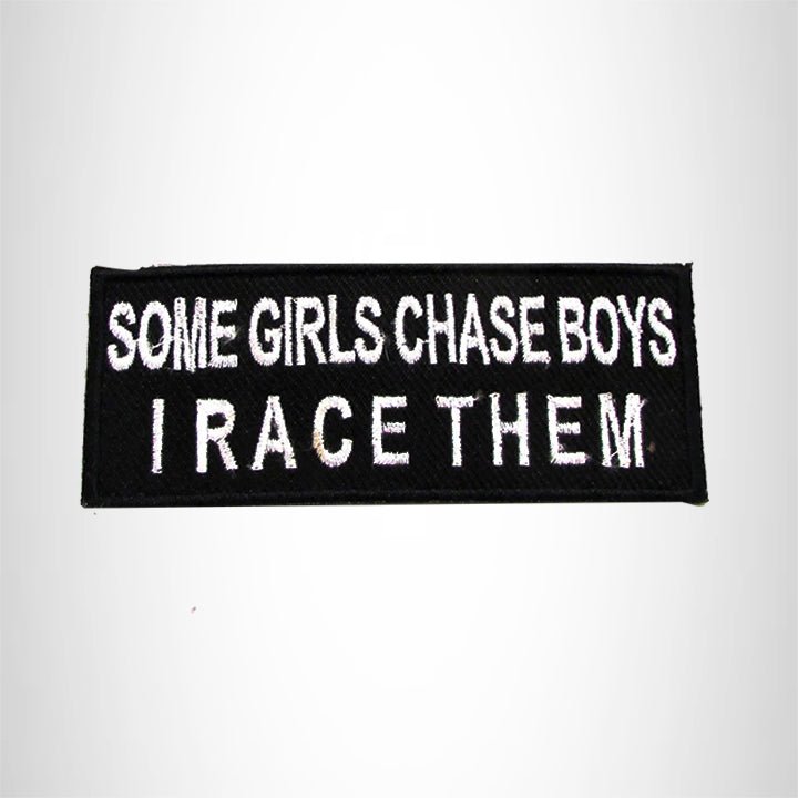 Some Girls Chase Boys I Race Them Iron on Small Patch for Biker Vest SB1024