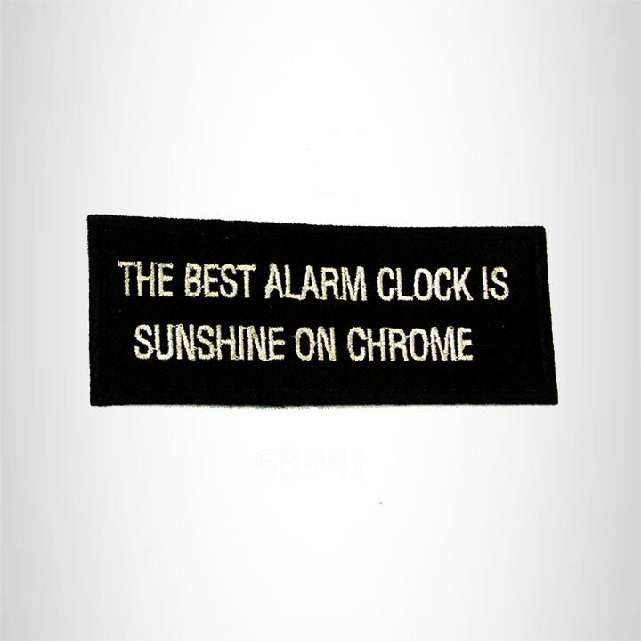The Best Alarm Clock is Sunshine on CHROMES Iron on Small Patch for Biker Vest B941.