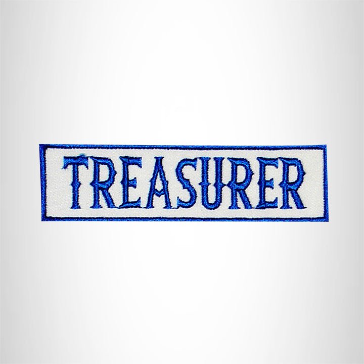 TREASURER Blue on White Small Patch Iron on for Biker Jacket Vest SB447