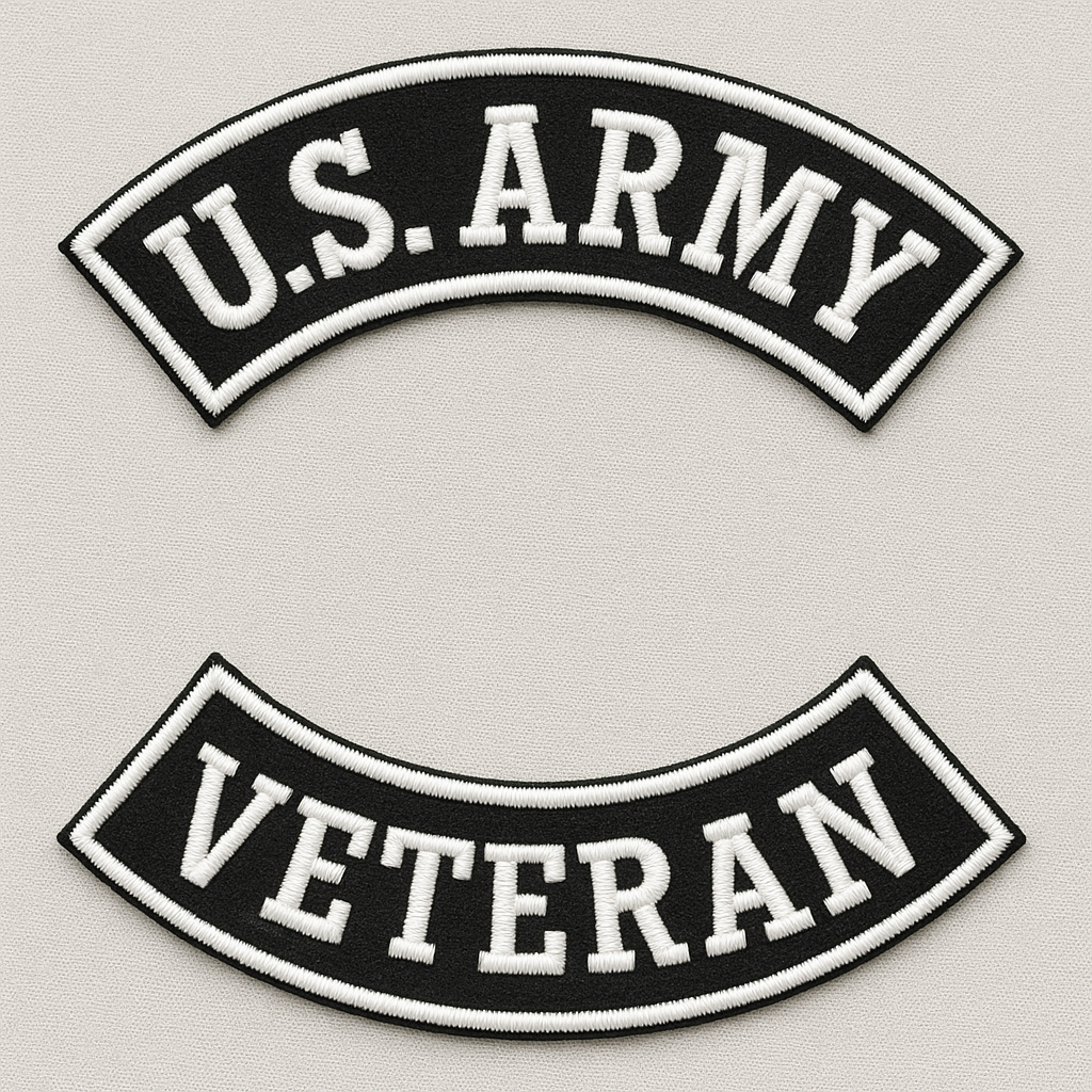 U.S. Army Veteran Rocker Patch Set – 2 Piece Embroidered Military Biker Patches